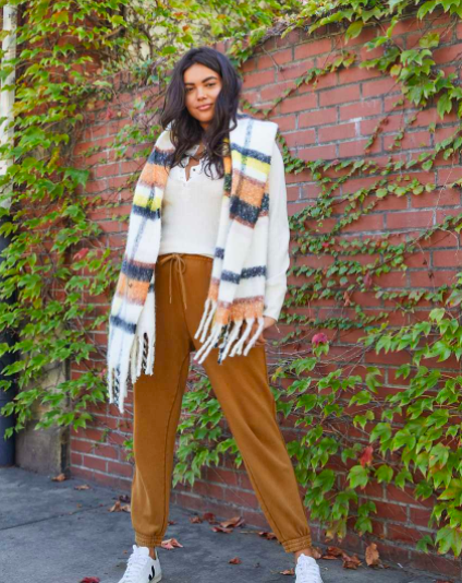 This orange and purple plaid scarf will make a statement with its muted, yet bold color blocks for a fun winter look. Made of 50 percent recycled fibers, this scarf isn’t just sustainable but soft to the touch. Retailing at $19.99, this scarf will have you looking stylish and staying warm all season.