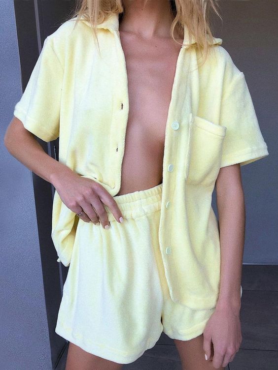 Finally, if you can’t get enough of cozy sets this winter, we promise you’ll still see a lot of them in the spring. Fizzano noted the popularity of terrycloth sets, linen sets and boxy short sleeve sets at the MAGIC trade show. Leisurely styles will define the season with these casual monochrome looks.