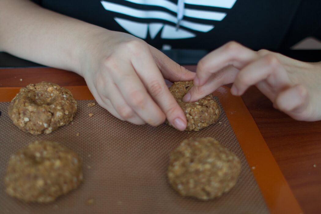 5. Mix all ingredients together and form into balls. Make sure to flatten them lightly so they aren’t perfectly round.