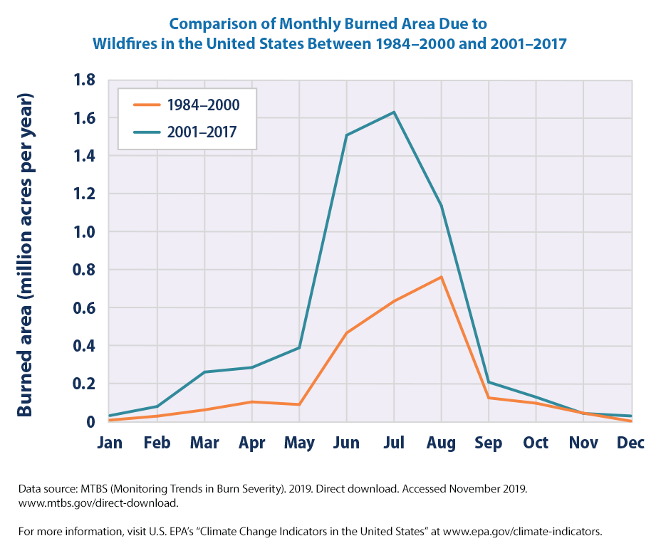 Additionally, there are significant fiscal implications of wildfires. According to the Center for Climate and Energy Solutions, since 2000 there have been 15 forest fires in the US that have cost $1 billion in damages each. In 2017 and 2018, wildfires were estimated by the NOAA to have cost over $40 billion.