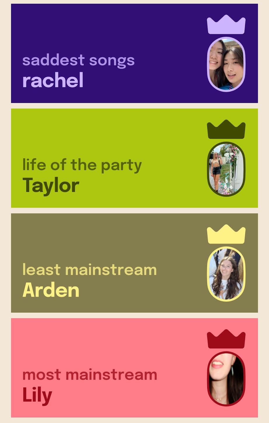 Knowing your personal stats is fun, but where does the social aspect come in? Superfan gives users the ability to invite their friends to join groups where the weekly recaps of each member is shared to all members. Members can react to their friends’ recaps with emojis, and see who won awards for the week such as “least mainstream” and “life of the party”.