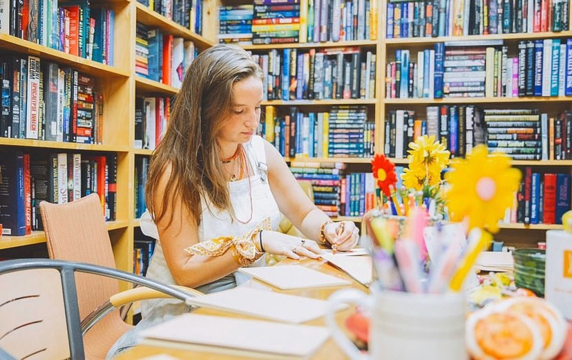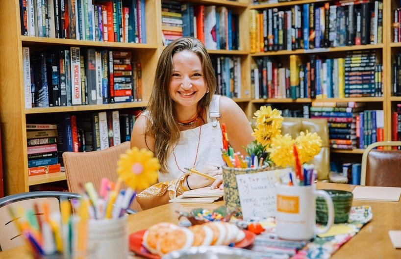 Former Penn Stater Emily Chertow hosted three pop-up journaling classes this past weekend in State College. VALLEY had the pleasure of attending the Saturday session held at Webster’s Bookstore downtown. The class was held in a cozy corner of the shop; a long table was decorated with pens, colorful flowers and delicious food to eat. There were 15 chairs set up and every seat was filled.