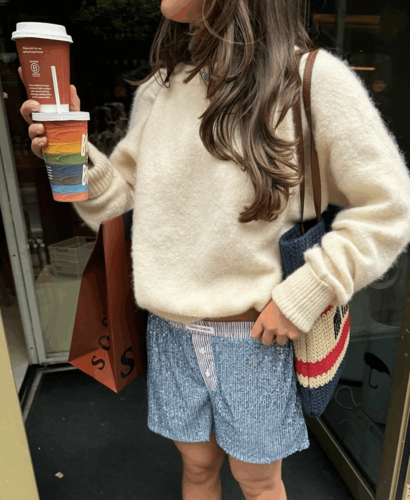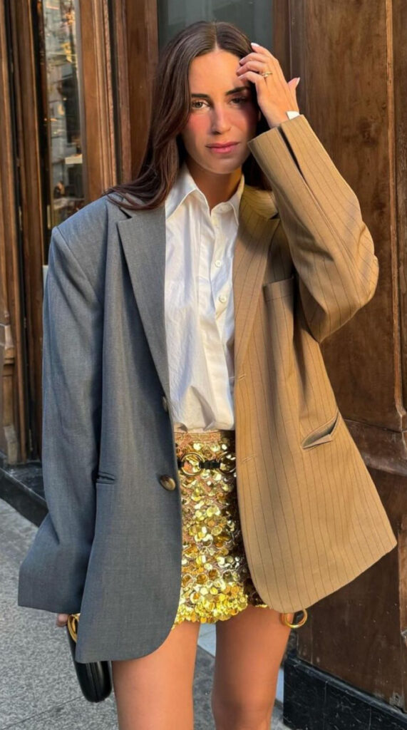 Oftentimes, when we think about styling a layered sweater and blazer combo, we naturally assume to pair the outfit with structured pants, or with jeans for a more casual approach. When applying ‘wrong pants theory’ to this same outfit, you might go against the grain and pair that blazer with linen boxer shorts or maybe a satin maxi skirt. This unconventional change adds a captivating element to an otherwise mundane outfit.